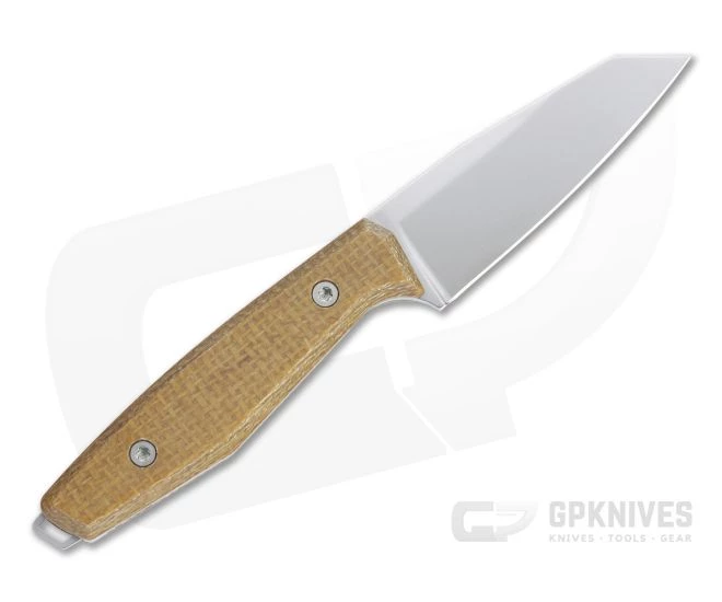 This version comes with a reverse Tanto blade and Mustard brown burlap Micarta handle scales.