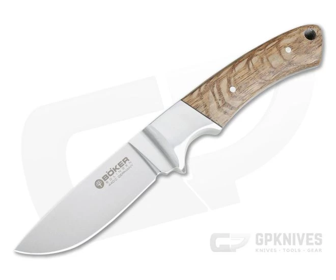 Compared to the Vollintegral, the Boker Integral Hunter is lighter, more compact and easier to handle thanks to the more streamline profile. Developed to handle a wide range of hunting tasks, the Integral Hunter has a superb balance thanks to the tapered full tang and integral bolsters. The bolsters, tang and blade are made from one piece of die-forged 440C, a perennial favorite for hunting and outdoor knives given its well-balanced performance. This version comes with handsome Lacewood handle scales, elevating the style of this outdoor hunter.