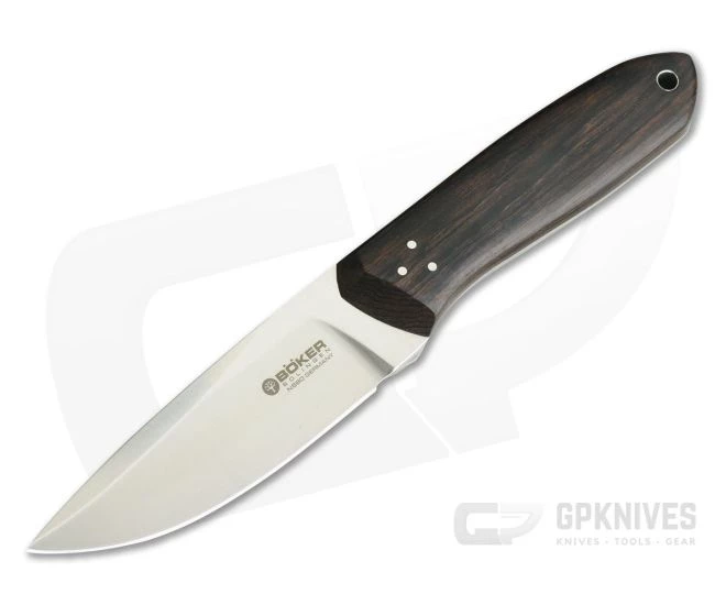 The Boker Solingen TNT fixed blade designed by Toni Tietzel compact hunting knife with elegant lines and a high level of versatility in outdoor applications. This high quality, German made fixed blade comes with a Bohler N690 stainless steel blade, Grenadill wood handles and a leather belt sheath.