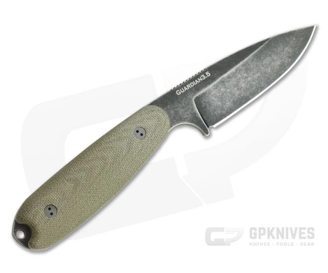 You asked for it, you got it. The Guardian3.5 fixed blade from Bradford Knives hits the sweet spot in size with a large handle and blade than the G3 while still being compact to carry. An integral guard keeps your fingers safe in use while the neutral handle design is comfortable in multiple grip positions. This sabre ground version comes with a Nimbus finished M390 blade and 3D OD green canvas Micarta scales.