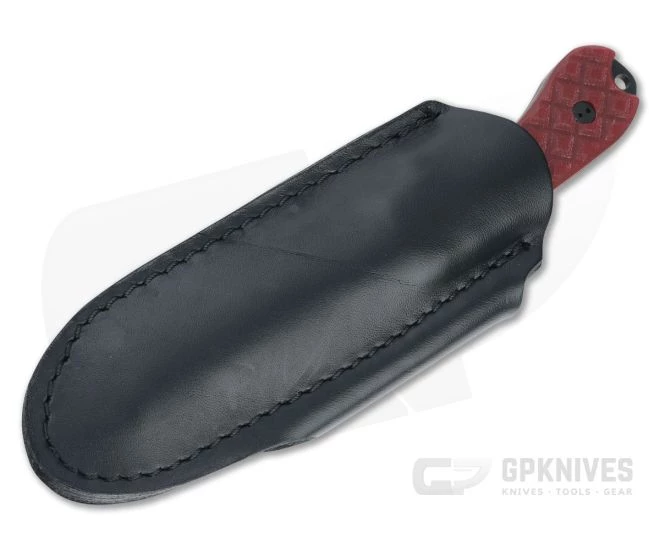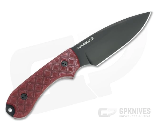 The Bradford Guardian3 is a compact, American made, everyday carry fixed blade that makes a perfect belt-carry companion for urban or outdoor use. Built to replace the modern EDC folding knife, the Guardian3 has a compact size that is easy to carry while still providing plenty of edge for your cutting needs. This GPKnives Exclusive has a false edge blade of black DLC coated CPM Rex 45 tool steel and red G10 handle scales.