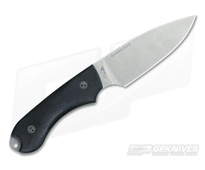 The Bradford Guardian4 is a mid-size, American made fixed blade that makes a perfect belt-carry companion for hunting or outdoor adventures. A step up from the EDC Guardian3, the Guardian4 was built to handle heavier cutting tasks and for users with larger hands. This version of the Guardian4 comes with a fully flat ground, stonewashed CPM 3V blade and 3D Black Micarta handle scales.