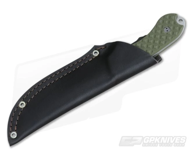 Brand new Guardian4 fixed blade with Peters’ Heat Treat from Bradford Knives sporting OD Green G10 scales and a Full Height Flat ground premium CPM 3V blade steel. The 4 is the perfect size to slide on your belt for a hunt or throw in your pack. It’s a step up from the 3 for larger cutting tasks and those with larger hands.