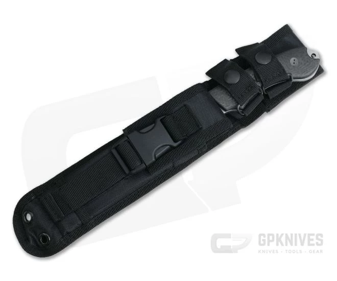 Sheath:Â Carries via a MOLLE compatible black nylon sheath with accessory pouch.