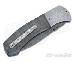 Aaron Frederick 3PS Satin CPM-154 Damascus Bolster Carbon Fiber Fixed Blade Knife 4685