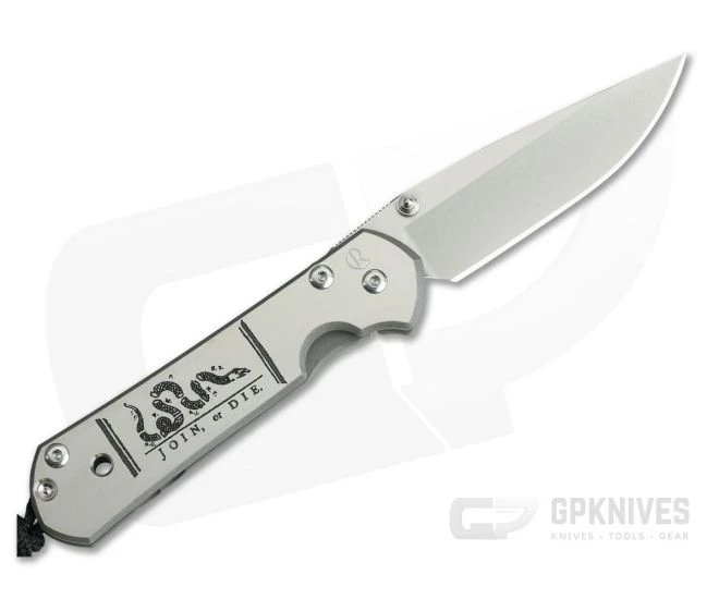 The Chris Reeve Left Handed Small Sebenza 21 Computer Generated Graphic “Join, or Die” is the latest laser engraved CGG added to the lineup. Embellished with a tribute to the political cartoon that was a symbol of unity through multiple American wars. Full titanium frame with a blend of sandblasted and satin polished finishes and a premium CPM-S35VN blade. This version is constructed for left handed operation.