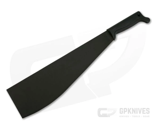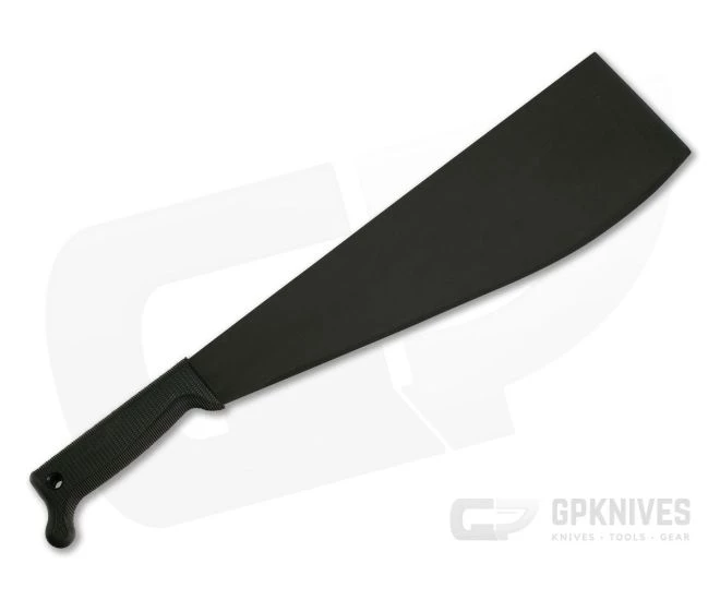 The Cold Steel Heavy Machete is just what it sounds like, a broad, stout and heavy machete with a forward weight and amazing chopping power. The compact blade delivers raw cutting power thanks to a blade that widens to over 4 inches at the tip while still being convenient to carry. The blade is made from 1055 carbon steel for toughness with a baked-on, matte black finish for corrosion resistance. The wide, flat-tipped blade is perfect for laying waste to any brush needed clearing. The textured Polypropylene handle is durable, weather resistant and offers excellent traction in the hand. Includes snap closure, nylon sheath for belt carry.