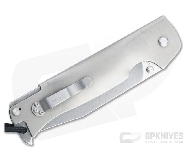 Handle:Â The simple folded sheet of stainless steel houses the lock and blade and is made with a contoured design for comfort in the hand. An index cutout keeps the fingers safe during use while the Ram Safe lock provides secure operation with tank-like durability. A definitive snap indicates the blade is locked after opening. Pull down on the attached lanyard to disengage and close the blade while making sure your hands are clear of the edge.