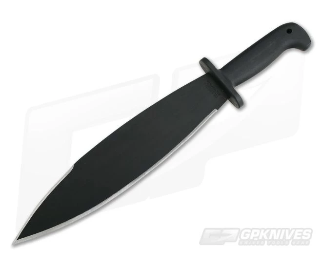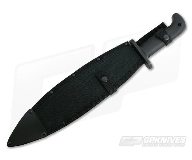 The Cold Steel Smatchet Machete is a recognizable design that has been formed into a useful machete. Based on the popular fear inspiring trench knife of WWII, the Cold Steel Smatchet features a broad spear point and false top edge. Made from 1055 Carbon Steel, the entire blade has been baked in a black anti-rust matte finish to help resist corrosion and reduce reflections. A contoured polypropylene handle with steel reinforced integral dual guard helps to protect fingers from the action at bay. Includes a Cor-Ex sheath for belt or gear carry. Brand new directly from Cold Steel Knives.