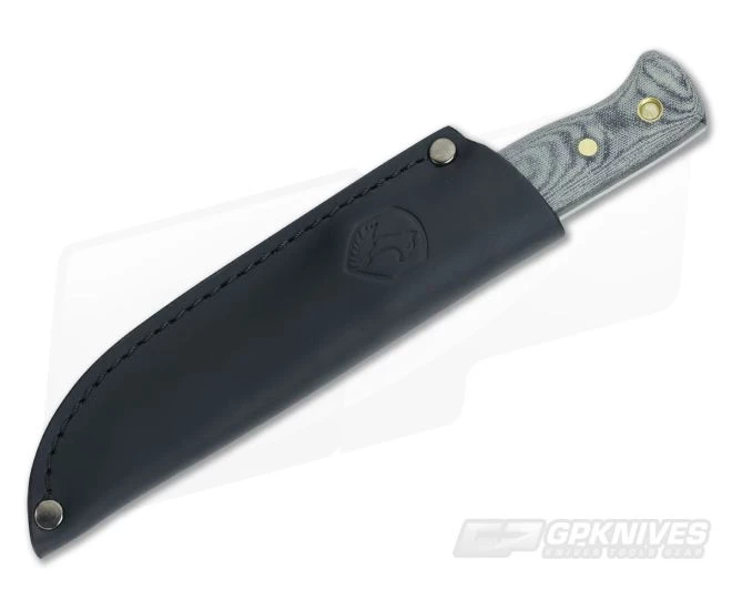 Handle: Contoured canvas Micarta handle scales are securely fitted to the full tang blade with epoxy and brass pins for worry free use. The handles are shaped and contoured in a way that makes them comfortable in nearly any grip and thanks to the texture of the canvas Micarta scales the knife offers a secure grip even in wet conditions. A brass lanyard tube at the pommel allows for lanyard attachment for added security.