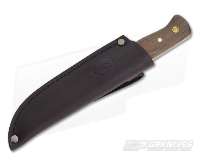 Handle: Contoured Walnut Wood handle scales are securely fitted to the full tang blade with epoxy and brass pins for worry free use. The handles are shaped and contoured in a way that makes them comfortable in nearly any grip and thanks to the well finished Walnut handles the Bushlore offers comfortable, abrasion-free, extended use. A brass lanyard tube at the pommel allows for lanyard attachment for added security.
