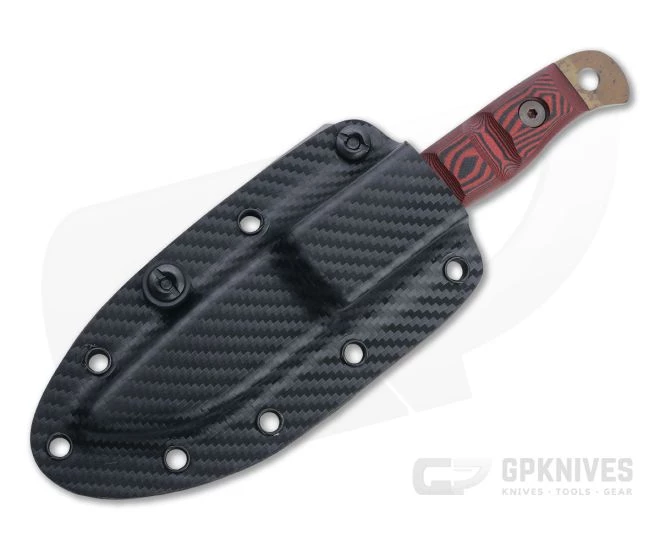 A perennial favorite at Dawson Knives, the Handyman is an EDC pocket fixed blade with a multipurpose design. You get the strength and security of a fixed blade with an exposed tapered pommel that can be used as a flat head screwdriver, pry tool or glass breaker as well as a wire breaking notch in the ricasso. Dawson utilizes American-made, CPM 3V powder metallurgy steel which offers exceptional toughness with edge holding up to three times longer than D2 and a clear Cerakote coating for corrosion resistance. This version comes with red and black layered G10 handle scales and an Arizona Copper finish blade.