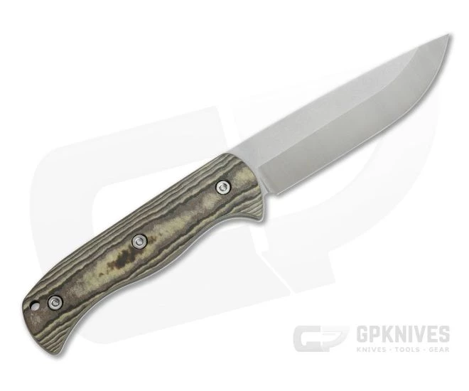 Handle:Â The full tang construction of the handle supports two smooth and contoured Richlite composite handle slabs. The spine of the tang is proud to the scales giving the feel of a more contoured handle without added machining. The handle ergonomics provide a secure and comfortable grip in multiple positions are attached with stainless hardware that is easy to remove for cleaning and maintenance.