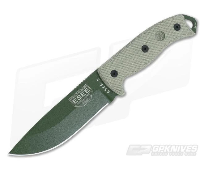 The ESEE 5P fixed blade was designed by an Air Force SERE Instructor with the goal of being one of the best knives for aircraft survival, escape and evasion. The ESEE 5 is made of “bomb-proof”, 1/4″ thick 1095 tool steel with a full tang construction, durable powder coat finish and Micarta handle scales. For emergency situations the ESEE 5 is every ounce of tool you need for survival.