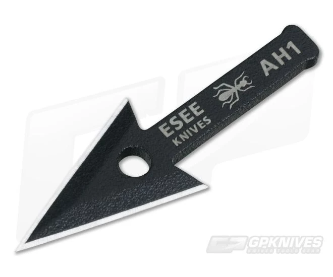 The ESEE AH1 Arrowhead is fully constructed of 1095 tool steel that has been black textured powder coated. The arrow is double edged and quite sharp. This small, yet useful, accessory has a lashing hole and shaft for attachment. A basic ESEE survival card is included. Clamshell Packaged.