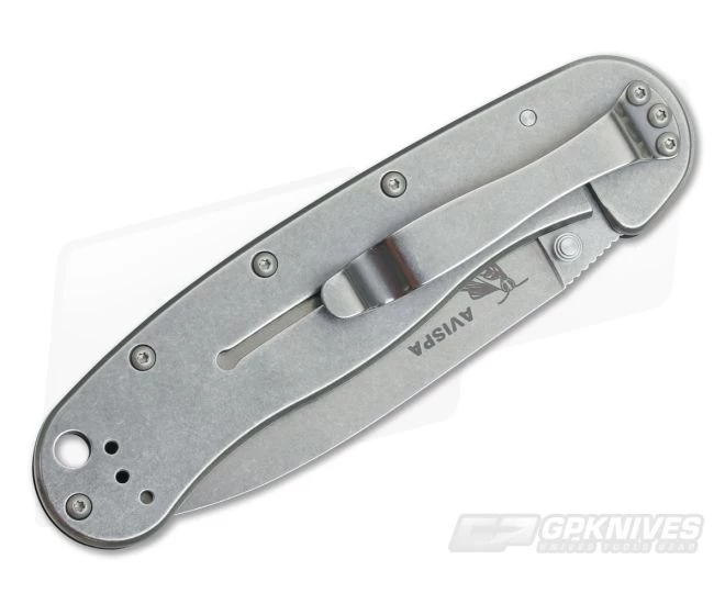 The ESEE designed Avispa Framelock, meaning ‘Wasp’ in Spanish, offers sleek design and dependability you require for everyday carry. A flat ground stonewashed AUS-8 stainless blade is adorned with ESEE’s Randall’s Adventure logo and given dual thumb stud operation. Textured nylon handles over a stainless liner and a tumbled stainless framelock side with open standoff construction make up the handle. Includes a tip-down stainless clip that can be flipped for tip-up right hand carry.