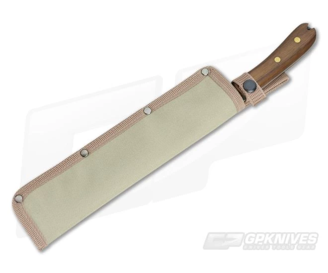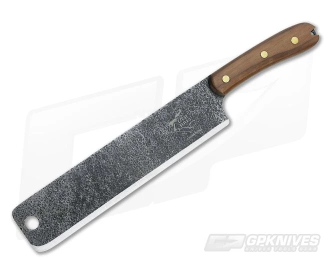 The Handle:Â Robust, contoured Walnut handle scales are attached via brass pins and offer an excellent combination of control and durability while the lanyard hole provides the option for more secure retention during serious use. The handle goes right up to the cutting edge allowing for more control in fine cutting tasks or, moving the grip to the pommel end, added leverage for powerful chopping cuts.