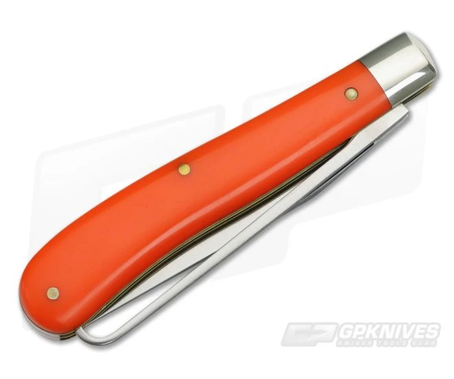 Brand New In-Tube Great Eastern Cutlery #48 Woodcock Bird Knife makes a handy companion featuring safety Orange Delrin handle scales. Complete with bird hook, this pocket knife is built with tough, cryo-treated 1095 carbon steel. A single bolster, contoured handle design built with pride in Titusville, PA USA.