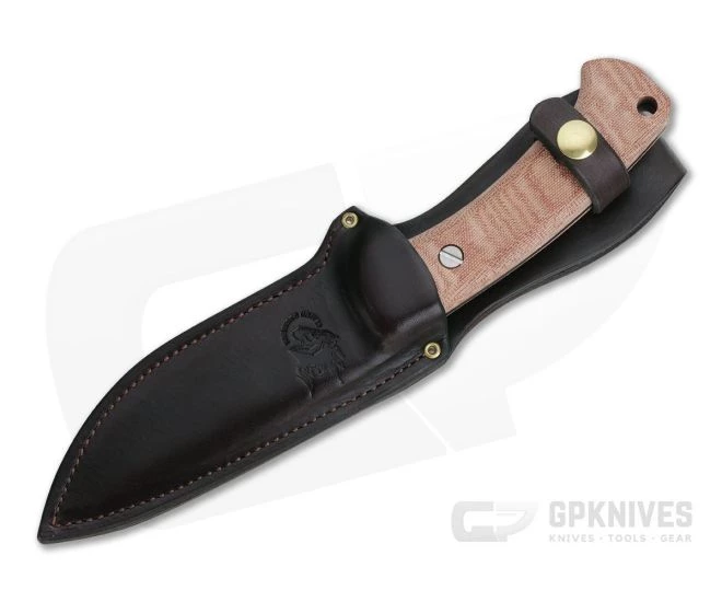 Handle:Â Beefy, 3D Machined Red Canvas Micarta handles fill the hand in any grip and offer a secure and ergonomic handle without the need for aggressive traction. A “bird’s head” style pommel that allows for a secure “pinky” finger grip that enhances control and security in the hand. The handle is attached with sturdy flat head bolts that allow for easy removal of the scales for cleaning and maintenance. A generous hole is provided for lanyard attachment.