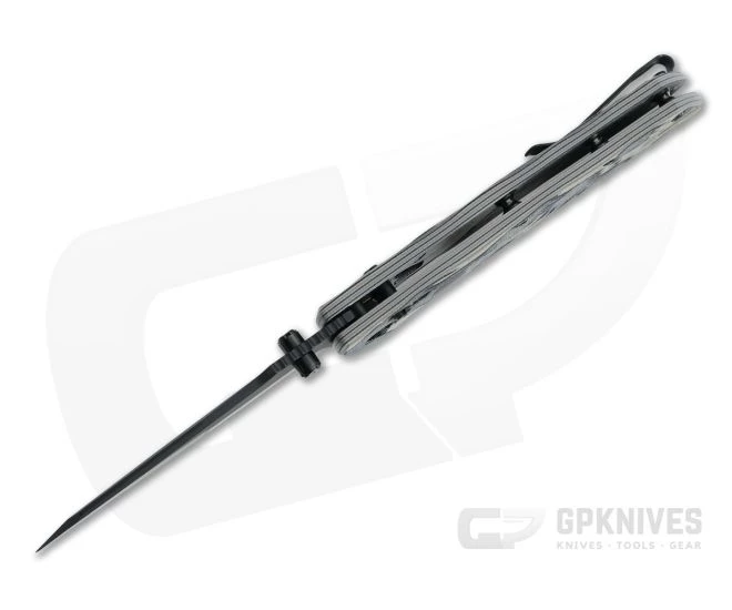 Blade: The sub 2.5 mm thick modified Wharncliffe blade has a compound grind and reverse Tanto point for exceptional performance and utility. Dual, milled black thumb studs offer ambidextrous deployment of the blade which rides smooth on phosphor bronze washers while the jimped thumb ramp delivers enhanced traction in use. The black Cerakote coated CPM-20CV blade resists wear and is discreet in use.