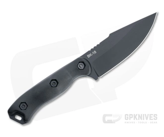 Another great collaboration between Ethan Becker and KaBar knives, the BK18 builds off of the popular and ergonomic BK16 handle platform. It offers a robust, tactical Harpoon style blade that lends itself to more tactical use while still being functional for utility tasks. This Blackout version features both the 1095 Cro-Van blade and Ultramid polymer handles in Black with a matching MOLLE compatible Celcon polymer sheath and nylon drop loop for carry.