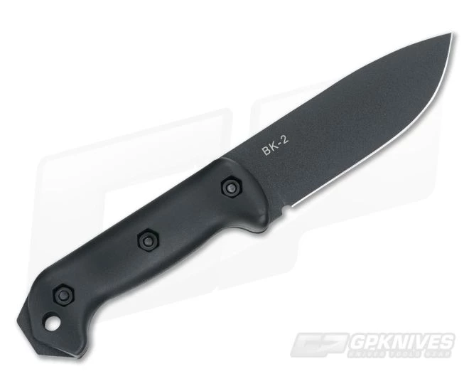 The Kabar Becker Knife and Tool BK2 Campanion with Black coated plain edge 1095 Cro-Van carbon steel blade and Zytel handles. The perfect outdoor partner works as well at batoning wood as it does skinning dinner. Drop point blade style full tang construction and lanyard hole. Glass-filled nylon hard sheath with lashing slots. Brand new direct from Kabar.