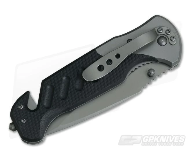 The Coypu liner lock folding knife from Kabar Knives is a robust and multifunctional utility folder. A hollow ground, stainless steel blade is augmented with a built in emergency web cutter and hardened steel glass breaker in the handle. Black G10 scales over the stainless steel liners deliver traction and durability when it counts.