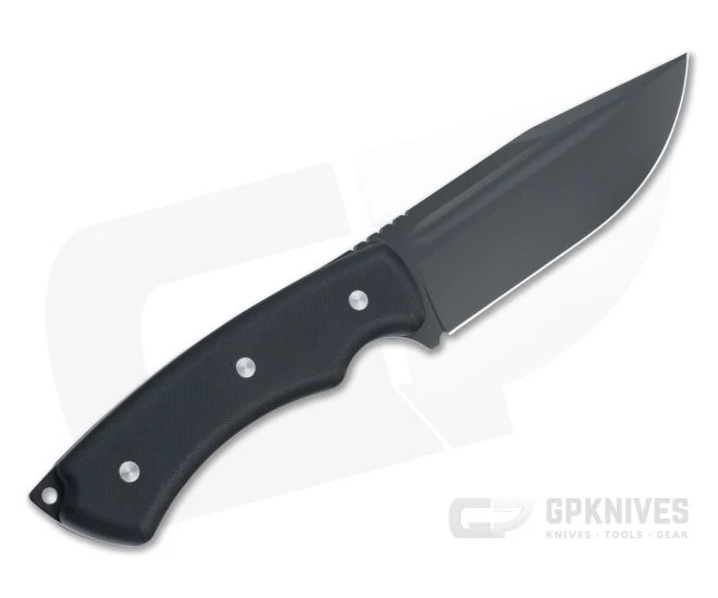 Blade:Â A wide stainless steel blade sports dual fullers, forward clip swedge and high flat grind for balanced cutting performance and durability all delivered in non-reflective matte black. There is plenty of belly on the plain edge for skinning tasks while spine jimping offers added traction for control.
