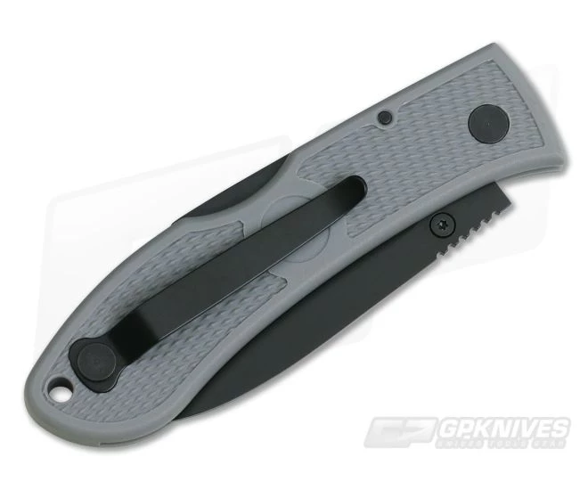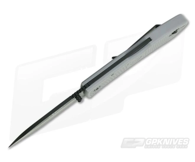 Handle:Â This comfortably textured Gray Zytel handle is lightweight and durable. It has no liners to weigh it down with black hardware and a lanyard hole to boot. You’ll find a black coated reversible pocket clip attached for tip up left or right hand carry. This makes the Dozier Folder a truly ambidextrous companion.