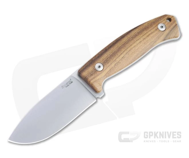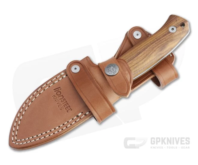 Marking a customer driven upgrade of a popular design, the LionSteel M2M is based on the M2, an outdoor fixed blade with big knife performance in a compact, easy to carry package. The M2M retains the broad, flat ground drop point blade that is the foundation of this performance driven tool. Upgrades include a longer, more versatile handle with comfortable 3D milled contoured scales, a sharpened tang for ferro rod striking, MOLLE compatible leather sheath and M390 stainless-steel blade. This version has a satin finished blade and Santos wood scales.