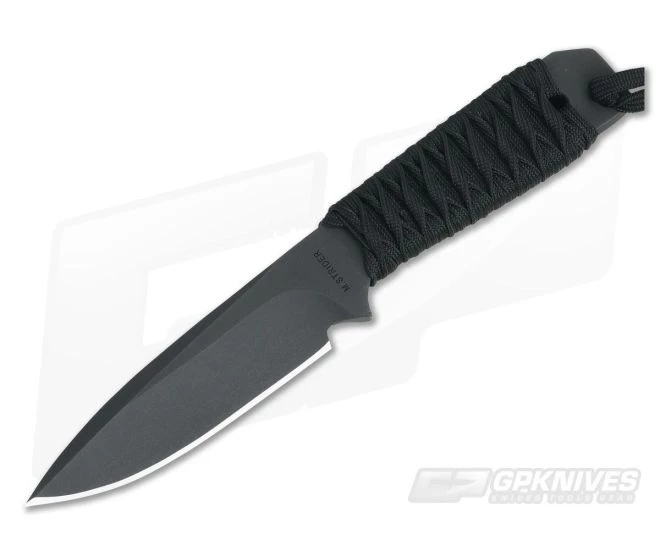The WP model by Strider Knives is a compact, lightweight fixed blade option that you can strap to your pack or person and hardly notice until you need it. These are all hand ground from Hitachi ATS-34 and Black coated featuring a black Paracord wrapped handle. The same Strider bite in a smaller, more concealable package.