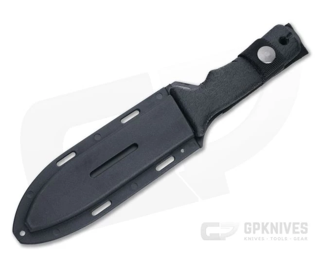 Handle:Â Textured black dual polymer (TPE and PP) deliver a durable, weather resistant and high traction handle that wraps the full tang of the blade. Strategic jimping further enhances traction, while the forward guard and thumb ramp offer added safety during strenuous use. The rugged all stainless and polymer construction make this a great option for use in and around aquatic environments. A hole is provided for lanyard attachment, and the tang extends past the pommel for impact use.
