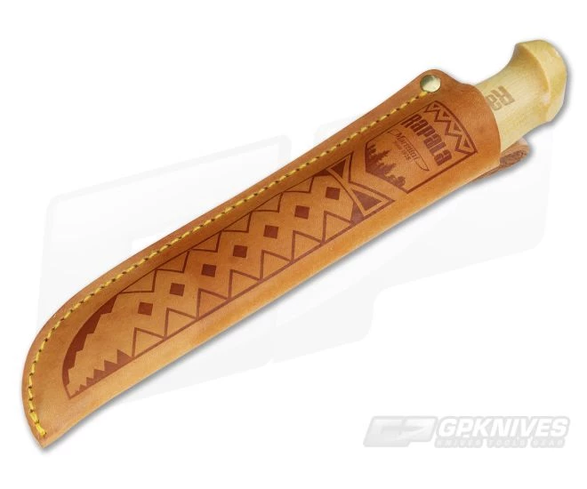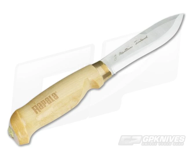 The Handle: Comfortable and classic, the birch handle gives a traditional appeal to this fixed blade. Gentle ergonomics offer a comfortable and solid grip. Surrounding the through tang, the birch handle has been accented with a brass bolster and Rapala logo.