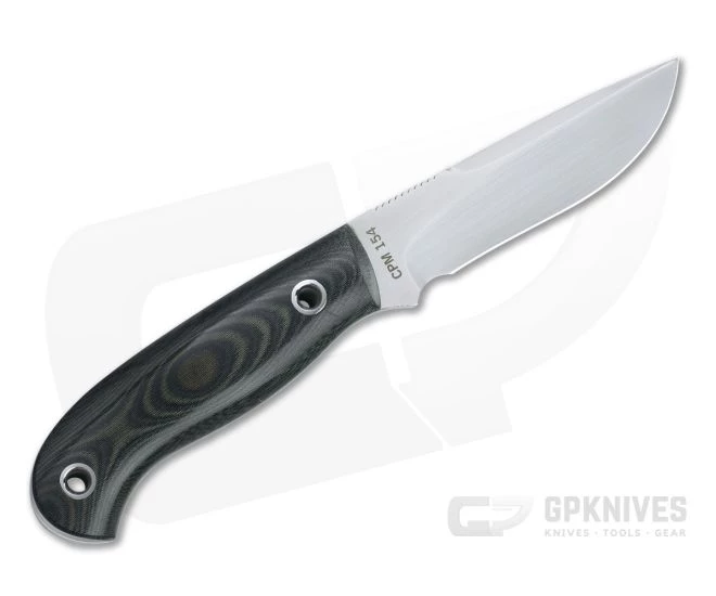 Blade:Â A perfect hunter’s blade, the utilitarian spear point has a fine tip, slicing shallow hollow grind and subtle recurve cutting edge. The spear point swedge trades a small amount of durability at the tip for enhanced piercing performance and a shorter grind for balanced overall performance. Coming in at about 7/8″ wide, the blade is narrow enough for skinning tasks and durable enough for heavier work. CPM-154 provides a good balance of performance and is equipped with a hand rubbed satin finish for a classy, custom feel. Jimping at the spine delivers a solid thumb rest with enhanced traction while a subtle guard on the ricasso offers added safety.