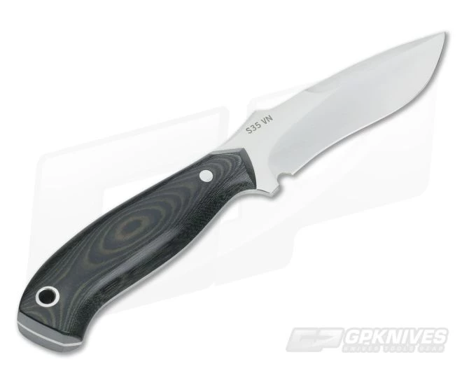 The Blade: Mike chose to build this model from S35VN with full tang construction and his famous horizontal hand rubbed satin finish. This penetrating drop point has an aggressive look with upper swedge and slightly recurved cutting edge. Great for all around utility and numerous chores around camp. Just about 3.5 inches of cutting edge for the 113 makes it the perfect size. It’s optioned with an exquisitely jimped thumb ramp for control, a small guard for protection and the type of sharpening choil knife enthusiasts dream of. It’ll keep a strong edge and be relatively easy to maintain. Â