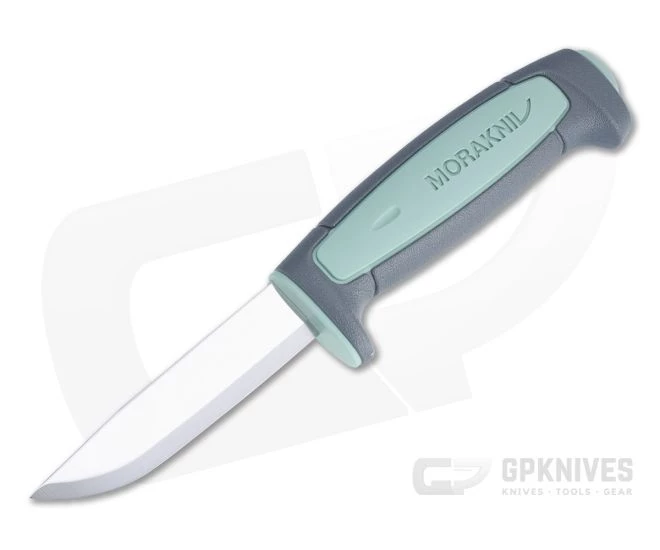 The Limited Edition Mora Basic 511 fixed blade retains all the practical Craftline functionality including the razor sharp Scandi-ground Swedish carbon steel blade and durable, weather resistant, ergonomic polymer in a handsome Sea Foam Green and gray colorway. Includes a matching molded sheath with stackable belt clip and drainage hole. Limited production.