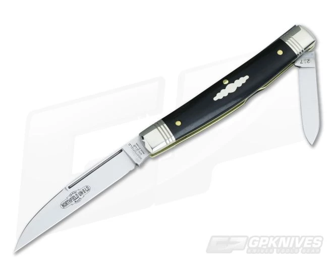 The #13 Northfield UN-X-LD Clerk from Great Eastern Cutlery featuring 2 usable knife blades is a throwback to traditional designs of old. A member of the Congress Series, this version has standout Gabon Ebony Wood handle scales and striped nickel silver bolsters.
