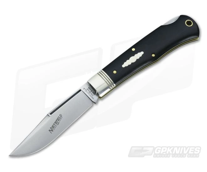 The Blade:Â Satin finished high carbon steel is easy to sharpen and hard-working. The Northfield logo is proudly engraved on the front. Crafted in the clip blade shape offering every day utility with added upper swedge grind. A long nail pull down the first half of the blade makes for easy operation. Opens fully with a solid “thwack” of the lock and ready to get cutting!