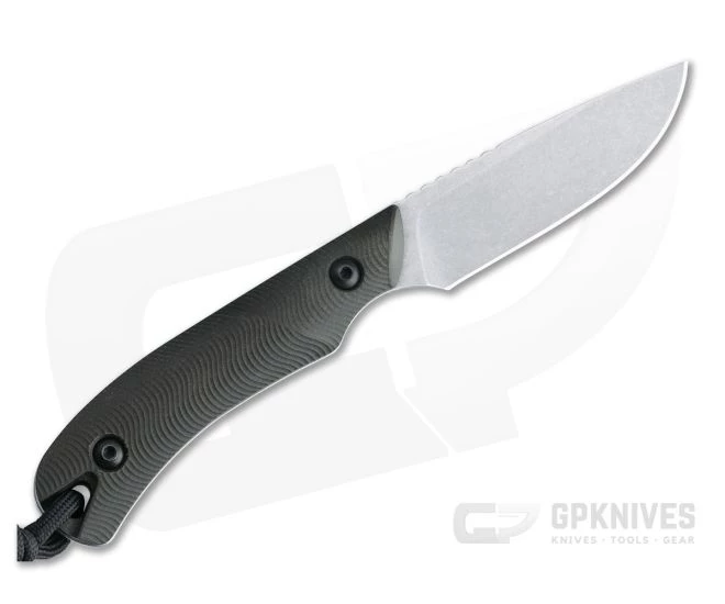 Handle:Â Comfortably contoured matte blasted Richlite handles are attached to the full tang blade with black oxide stainless steel hardware providing a durable, low maintenance platform for use. The blasted texture milling delivers plenty of traction for use in all conditions while the index groove provides added safety. An attached lanyard gives added real estate and easy draw. Lanyard color may vary.