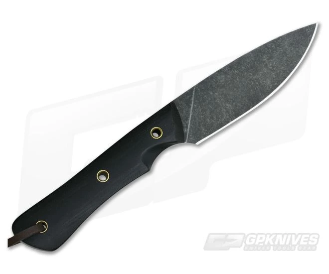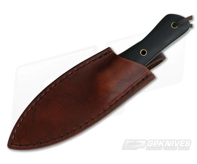 The Handle:Â Black Canvas Micarta handle scales are attached with flared brass pins for a very secure construction. The scales are shaped and contoured for a great and comfortable in-hand feel while still being comfortable in a variety of grips. A subtle index finger cutout with dual handle grooves which, along with the pommel swell, provide a secure, four-finger grip. The included leather lanyard provides added security when putting the knife to serious use.