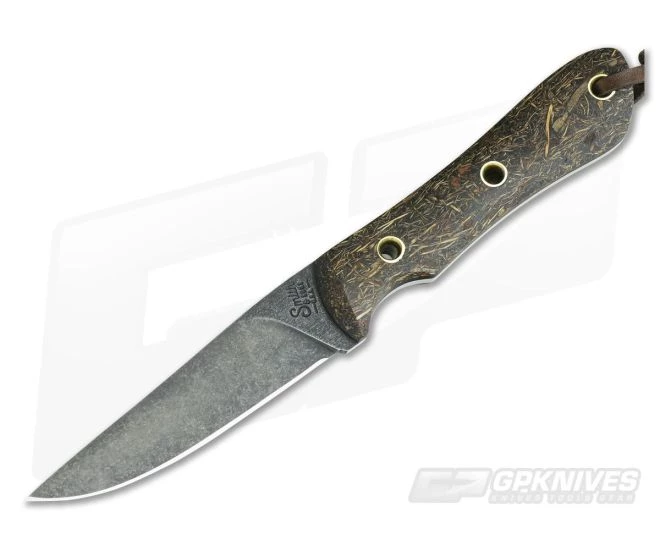 Blade:Â Full tang, CPM D2 tool steel comes in a slim clip point profile that is refined for detail work, every day tasks or for use as a bird and trout knife. CPM D2 is reasonably tough and highly wear resistant providing great edge retention in this fully flat ground blade. The blade sports the Smith & Sons “Darkened Stonewash” finish on the flats and satin on the spine. A subtle taper to the point leaves plenty of durability while offering great piercing performance.