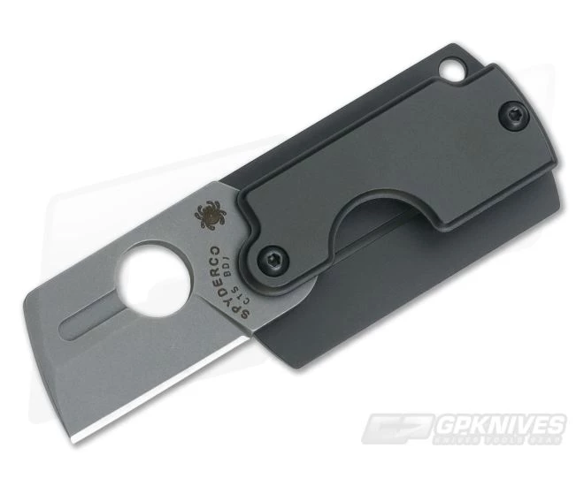 The Blade:Â The small saber ground blade now has a V Grind (ground on both sides) that offers more intuitive use than the previous chisel grind. The blade is now made from CTS-BD1, an excellent EDC steel, that has a good combination of the properties that make for good performance in a knife of this style. The blade is tumbled to hide wear and looks great with the new gray aluminum front scale. One hand opening is a breeze thanks to the trademark Spyderhole.