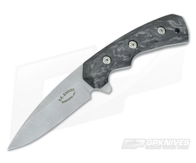 New Custom C-4 Fighter direct from maker Steven Kelly with a full tang of dark washed CPM-154 dressed in Marbled Carbon Fiber. The C-4 would make a comfortable backup carry or pristine collector’s piece.Â