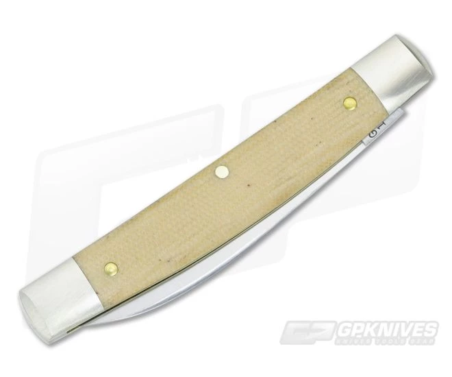 The Handle:Â Muslin Micarta has a light texture to it and looks like a wood grain ivory micarta that offers a modern, yet classy appeal all at once. Both the nickel silver bolsters and flush hot dog shield have a wonderful brushed satin finish. Construction consists of brass pins and liners accenting to perfection this slim multi-tool of the traditional knife world.