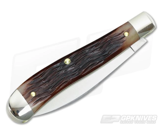 The Tidioute Cutlery #48 Improved Trapper from Great Eastern is handy, stylish and an all-around stunner of a pocket knife. 2-bladed hard working 1095 and curvy Antique Amber Jig Bone scales make quite the team.