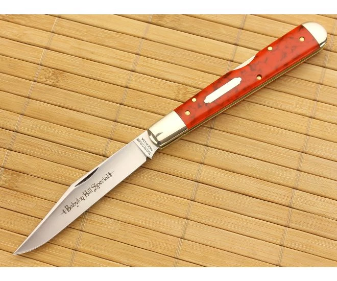 Named after an area overlooking Tidioute, PA the #64 Babylon Hill Special pocket knife with Fire Brick Acrylic is one finely crafted folder. This is a nice, long single blade locking folder that functions smoothly with killer looks to boot.Â