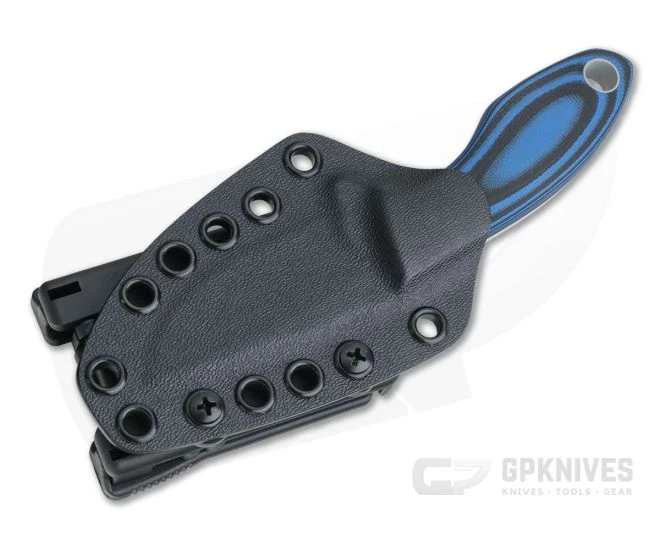 Handle: Ergonomically designed, blasted G10 handle scales are contoured for unparalleled comfort in the hand and enhanced traction. Shaped with a generous palm swell, the handle design locks the hand in without compromising versatility for multiple grips. The scales are attached via a black Micarta pin and hollow lanyard tube.