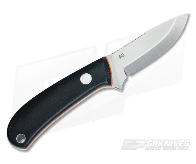 The Handle:Â The handles are clean, ergonomic and secure in the hand. The black canvas Micarta is handsome and durable and contrasts nicely with the bright orange G10 liners. An aluminum pin and a lanyard tube secure the handles to the full tang of the blade.