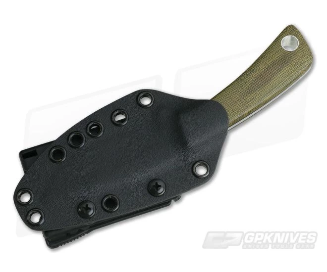 Handle:Â Green Canvas Micarta handle scales are smooth and contoured for comfort on the ergonomically designed handle. Black liners add a subtle visual element between the satin tang and green Micarta. The curving, neutral handle design locks the hand in without compromising versatility for multiple grips. The scales are attached via a single pin and oversize hollow lanyard tube.