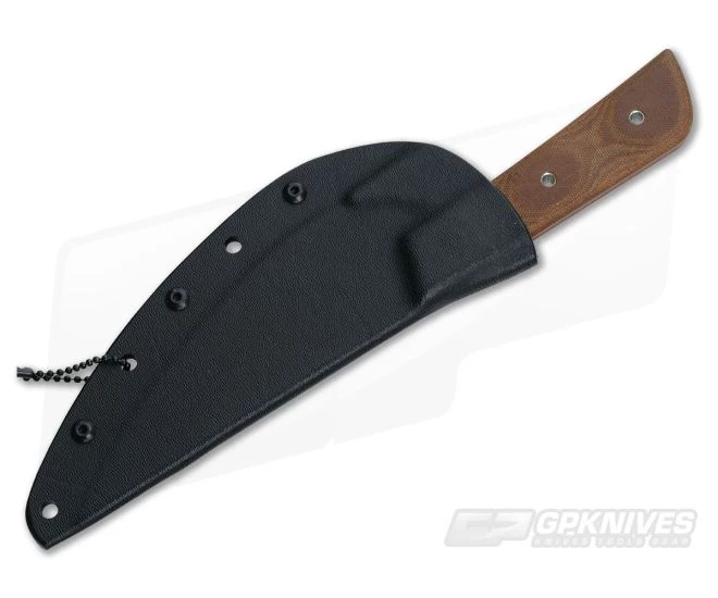 TOPS Knives Frog Market Special will slice, dice & chop veggies to protein at-home in the kitchen or the camp site. Coming in at only 1/16″ thick 1095 high carbon tool steel and barely weighing 3.5 ounces, the FMS is a lightweight slicer with solid construction. The thinner steel allows for clean, smooth cuts with added flexibility over thicker kitchen knives while providing over 5 inches of cutting length. The full tang (9 1/2″ overall) is Black River Washed for protection with ergonomic tan canvas micarta (grip when wet or dry) scales over red fiber liners for a comfortable feel in hand. The steep curve in the edge makes slicing a breeze while the wide heel allows for deep searing cuts. The tip is ideal for boning meats such as chicken and pork or filleting fish. The thinnest knife in the TOPS lineup is great for your pack, camper or kitchen. Includes a Kydex sheath with rotating steel spring clip.